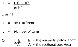 of inductance (L) and calculated value of core factor Ci using